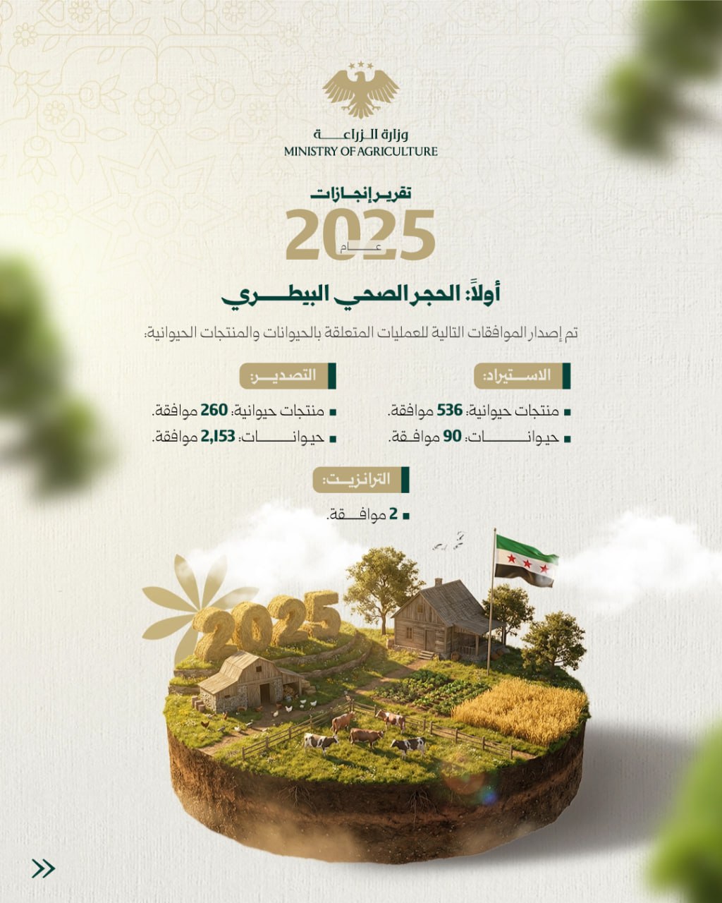 أعلنت المؤسسة العامة للأعلاف عن افتتاح دورة علفية جديدة لدواجن في كافة الفروع في المحافظات اعتباراً من 21/ 11 ولغابة 31/ 12/ 2024 بمقنن 500...