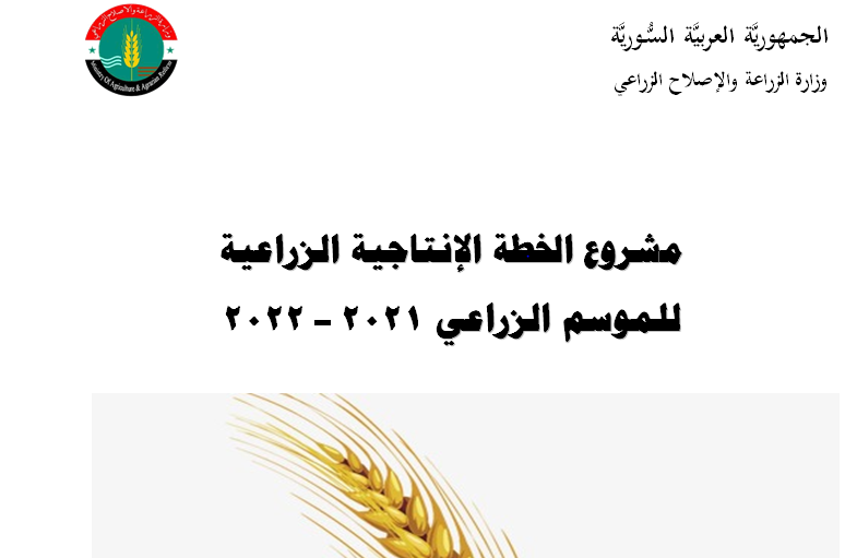الخطة الإنتاجية الزراعية للموسم الزراعي (2021 ـــــ2022)